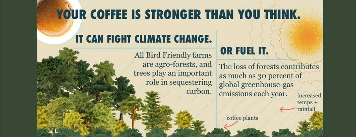 Every cup of Bird Friendly coffee you drink encourages more farmers to grow in the shade, which is good for birds and for people.